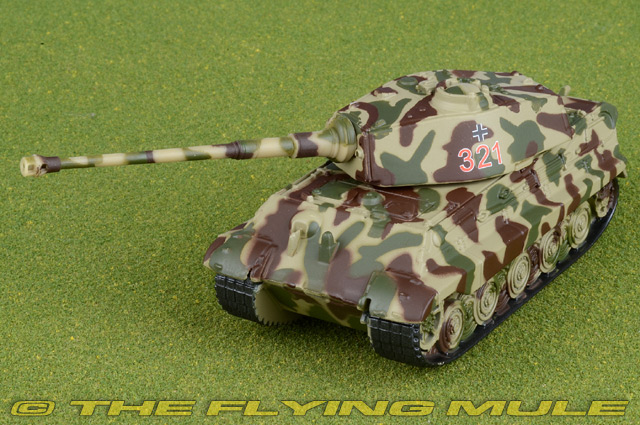 The King Tiger, Germany's most formidable Heavy Tank, made its first appearance on the WWII theater in 1944. The first 50 tanks produced had Porsche turrets whereas subsequent tanks were equipped with the Henschel designed production turret. The King Tiger was armed with a 71-caliber 88mm gun that had enough power to penetrate 150mm thick armor from 2000m away. For protection, the chassis front armor was 150mm thick with 80mm thick side armor.
