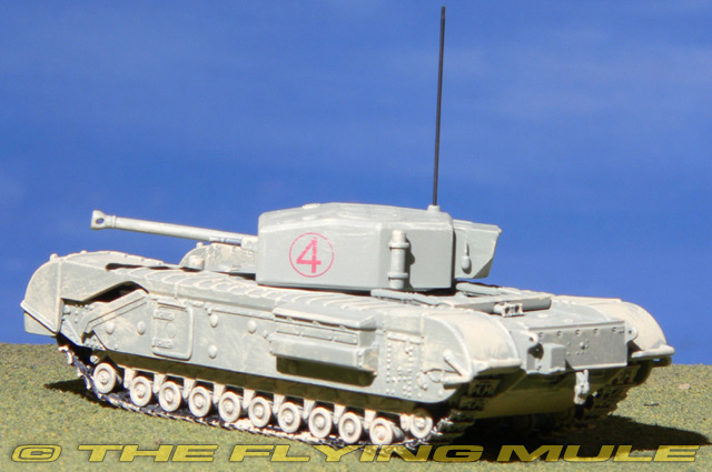 Six Churchill tanks landed on D-Day, June 6th 1944. The Churchill MKIII carried a six-pounder main gun in a unique welded turret. Additional armament consisted of one coaxial and one hull Besa. Designed as a heavy infantry tank to replace the Matilda II, the Churchill prototype was completed in June 1940 and the type entered production in June 1941. The design was largely influenced by the British Army's experiences with trench warfare during WWI. As a result, the Churchill was a large, heavy (38 tons), and relatively slow machine, built to traverse heavily cratered landscapes to take on lightly armored infantry. The small turret significantly restricted the size of armament that could be fitted to the Churchill but it's heavy armor made it much more resilient than contemporary allied tanks. © Copyright 2003-2026 The Flying Mule, Inc. The Corgi "Military Vehicles" range presents higly-detailed, ready-made diecast models of military vehicles. Corgi diecast tanks require no glueing or painting. Each model is an instant display piece or diorama centerpiece straight from the box. Made from diecast metal, die cast tanks from Corgi are 100% true to scale... these don't look like model tanks, they look like tanks!. Color, camouflage and unit markings are carefully researched for Maximum authenticity, marking the difference between and authentic scale model tank and a "toy" tank. Corgi "Military Vehicles" diecast vehicles feature: - Diecast metal construction with some plastic components.