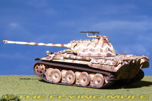 Designed to replace to the PzKpfw IV, which had met its match in the new Soviet T-34, the Panzerkampfwagen V "Panther" series of heavy tanks were armed with powerful weapons and equally powerful armor protection. Thought by many to be the best German tank of WWII, the Panther featured a sloped armored turret with a long barrel 75mm main gun and an anti-aircraft 7.92mm machine gun. It was equipped with anti-magnetic paste to combat magnetic mines, and armor skirts offered further protection for the track system and crew. Approximately 5,500 Panthers were built during WWII. © Copyright 2003-2025 The Flying Mule, Inc.
