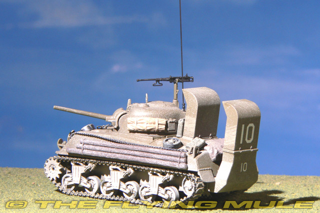 The Sherman from Company A landed at H-Hour (0630) on the Easy Red Sector of Omaha Beach. The markings on these tanks were very simple, with no white stars or bumper identification. Only the tank name beginning in the company letter, the serial numbers and stenciled data plate with shipping information were visible. Some of the tanks had their vehicle numbers painted on the upper and lower portion of the deep wading trunk. It is known that Tanks 9 and 10 made it ashore.