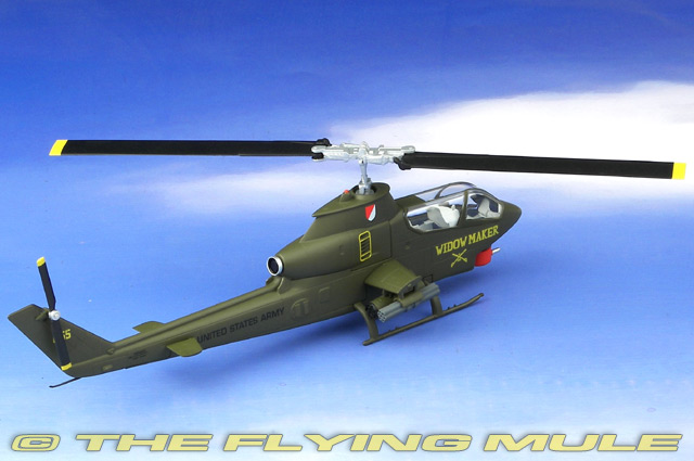 The 11th Armored Cavalry of the US Army has one mission: to provide the most capable and lethal arms-opposing force in the world. The members of the "Blackhorse" are known for their brutal training in the Mojave Desert. Designed to meet an urgent US Army requirement for a helicopter gunship, the Bell AH-1 Cobra-sometimes called The Snake-was first flown on September 7th, 1965. Troop-carrying Hueys depended on the Cobra for fire support; it was fast and very maneuverable, and its narrow 38-inch airframe made for a difficult target. Its main armament was its three-barrel 20mm Gatling gun mounted in a chin turret, but it was also capable of using a variety of other weapons including rocket pods, cannon pods, minigun pods and missiles. Replaced by Apaches in the 1990s, the Cobra now serves the US Forest Service as a firefighter. © Copyright 2003-2025 The Flying Mule, Inc. The Corgi "Aviation Archive" range presents highly-detailed, ready-made diecast models of military and civilian aircraft. The vast Aviation Archive range has become the standard by which all other diecast airplane ranges are judged. Each Corgi model is based on a specific aircraft from an important historical or modern era of flight, and has been authentically detailed from original documents and archival library material. Famous airplanes and aviators from both military and commercial airline aviation are all honored. Corgi "Aviation Archive" diecast airplanes feature: - Diecast metal construction with some plastic components.