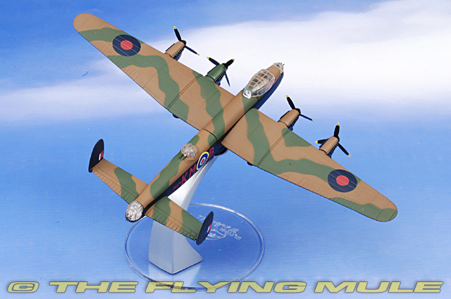 The Battle of Britain Memorial Flight (BBMF) is a Royal Air Force flight which provides an aerial display group comprising an Avro Lancaster, a Supermarine Spitfire and a Hawker Hurricane. The aircraft are regularly seen at events commemorating World War II, upon British State occasions and at air displays throughout the United Kingdom and Europe. The Flight is administratively part of No. 1 Group RAF, flying out of RAF Coningsby in Lincolnshire. Designed to meet a specification for a new generation of "worldwide use" medium bombers, the Avro Lancaster was first flown on January 8, 1941. The design of the Lancaster evolved from an unsuccessful two-engine aircraft called the Manchester. The heavier Lancaster had four engines and an extensive bomb bay, with later versions capable of carrying 22,000 lb bombs. Used primarily as a night bomber, the Lancaster was a versatile aircraft that became most famous for its role in the 1943 "Dam Buster" raids on Germany's Ruhr Valley dams. Between 1942 and 1945, Lancasters flew 156,000 sorties, dropping 608,612 tons of bombs on enemy targets. © Copyright 2003-2025 The Flying Mule, Inc. The Corgi "Warbirds" range presents affordable, ready-made diecast models of military aircraft. Corgi "Warbirds" diecast airplanes feature: - Diecast metal construction with some plastic components.