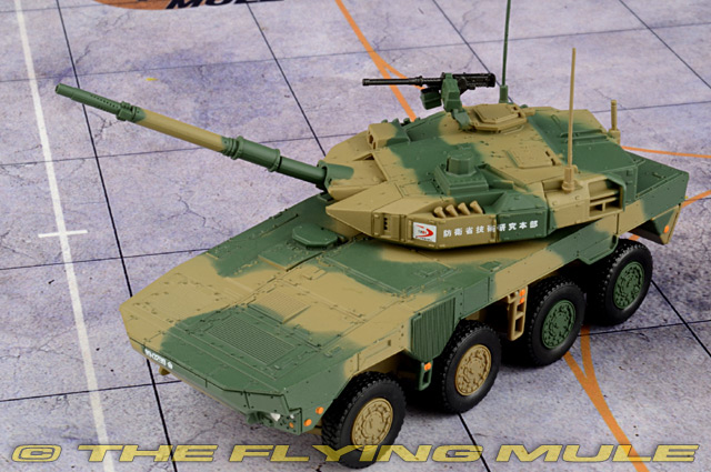 The Type 16 Maneuver Combat Vehicle is a wheeled tank destroyer of the Japan Ground Self-Defense Force. The Maneuver Combat Vehicle was part of a new armored vehicle strategy that prioritized light air-transportable firepower. Originally the number of main battle tanks was to be reduced from 760 to 390, with most remaining tanks to be concentrated on the islands of Hokkaido and Kyushu. Some 200-300 MCVs were to be procured and airlifted to islands when and where they were needed. The idea was that the smaller, lighter, and faster MCV could be redeployed quicker than tanks to better defend the outlying islands. However, as of 2015, with both growing tensions with Russia over the disputed Northern territories, and concerns that the MCV on its own would be insufficient against potential adversary amphibious and airborne armor systems, plans to reduce the numbers of existing main battle tanks (including procurement of the new Type 10 tank) in favor of buying MCVs and their support infrastructure are currently being reviewed.