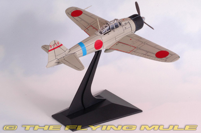 Dragon Models produce some of the most detailed diecast metal Zero models available. Each model is assembled from sturdy metal components featuring detailed panel lines, antennas, access panels and other surface details. All feature accurately researched exterior markings and placards which are applied using a state-of-the-art pad printing process so they will not fade or peel like decals. The canopy can optionally be displayed in an opened position, revealing a detailed cockpit interior. Finally, the model may be shown "in flight" on its display stand, or firmly on the ground when the metal landing gear is attached. Die-hard Zero fans will be impressed with the attention to detail shown in the construction of this model.