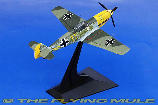 Designed to meet a Luftwaffe need for a single-seat fighter/interceptor, the Messerschmitt Bf 109 was first flown on May 28th, 1935. Its all-metal construction, closed canopy and retractable gear made the Bf 109 one of the first true modern fighters of WWII. This versatile aircraft served in many roles and was the most produced aircraft of the war and the backbone of the Luftwaffe, and was flown by Germany's top three aces, who claimed a total of 928 victories between them. Armed with two cannons and two machine guns, the Bf 109's design underwent constant revisions, which allowed it to remain competitive until the end of the war. © Copyright 2003-2025 The Flying Mule, Inc.