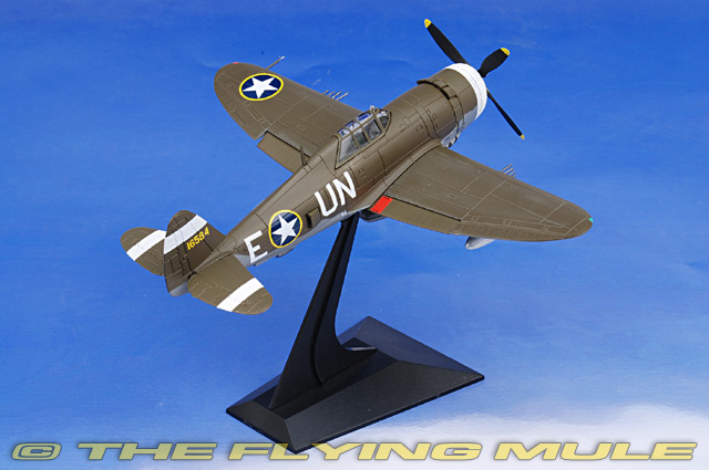 The Dragon Wings P-47 mold allows the "razorback" and "bubble-top" canopy styles with separate castings for each fuselage. This finely crafted model includes many details, such as an opening canopy that reveals a fully detailed cockpit with pad-printed instruments and side panels. The flaps are hinged and moveable, which is uncommon in 1:72 scale. The carefully-applied paint schemes bring out the subtleties of panel lines, rivets and control surface details. Pad-printed unit markings and finely detailed placards complete this historically accurate model.