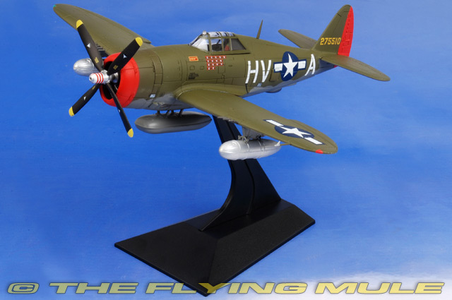 The Dragon Wings P-47 mold allows the "razorback" and "bubble-top" canopy styles with separate castings for each fuselage. This finely crafted model includes many details, such as an opening canopy that reveals a fully detailed cockpit with pad-printed instruments and side panels. The flaps are hinged and moveable, which is uncommon in 1:72 scale. The carefully-applied paint schemes bring out the subtleties of panel lines, rivets and control surface details. Pad-printed unit markings and finely detailed placards complete this historically accurate model.