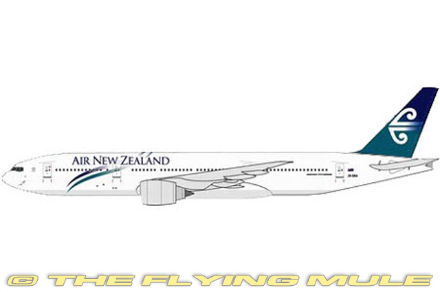 This model celebrates Air New Zealand's first 777! The new 777-200ER aircraft was received on October 29th, 2005. Air New Zealand (IATA: NZ), ICAO: ANZ, and Callsign: New Zealand) is a major scheduled passenger airline based in Auckland, New Zealand. It is the New Zealand flag carrier focusing on Australasia and the South Pacific, with services to Europe, North America and Asia. It is a Star Alliance member. Its main base is Auckland International Airport.