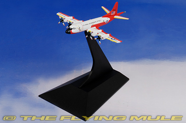 US Navy Air Development Squadron Eight (VX-8) was estabished on July 1st 1967 at NAS Patuxtent River, Maryland to conduct airborne oceanographic and geophysical surveys using C-121s and NC-54s. The squadron was redesignated Oceanographic Development Squadron Eight (VXN-8) in January 1969 and upgraded to specialized RP-3 variants of the P-3 Orion. VXN-8 flew long-range survey missions around the globe earning them the nickname "World Travelers". The fleet of five aircraft all wore an international orange and white paint scheme to identify them as nonweapon-carrying. The squadron operated the RP-3 for 24 years before finally being disestablished in September 1993. Designed as a replacement for the P2V Neptune Anti-Submarine aircraft, the P-3 Orion was first flown in November, 1959. The aircraft is based on the Electra turboprop airliner, with the addition of a sensitive Magnetic Anomoly Detector, located far from airframe interference in a distinctive tail boom "stinger". An internal bomb bay can house torpedoes and even nuclear weapons while anti-ship missiles or bombs can be carried on underwing pylons. The P-3's original mission was to track Soviet submarines during the cold war, however it is now in service with numerous countries including Australia, Canada, Germany and Japan, to name but a few. © Copyright 2003-2025 The Flying Mule, Inc. The Dragon Models "Dragon Wings 1:400 Warbirds Series" range presents highly-detailed, ready-made diecast models of military aircaft. Dragon Models "Dragon Wings 1:400 Warbirds Series" diecast airplanes feature: - Diecast metal and plastic construction.