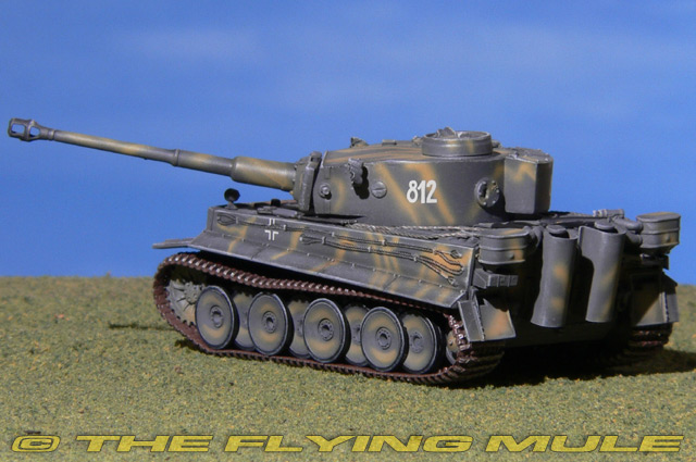 Dragon's 1:72 scale Tiger I is constructed almost entirely of diecast plastic, which helps highlight even the smallest details such as welding beads and intricate Zimmerit coatings (some releases). Each release spotlights an early, mid or late production version with subtle variations such as the replacement of the rubber rimmed road wheels with steel wheels. Intricately detailed air intake filters are included for tropical/desert theater releases. This model features a rotating turret, elevating cannon with a weathered and detailed muzzle break and forward machine gun. Separately applied tow cables, shovels and track repair gear provide the extra equipment needed in the battlefield.