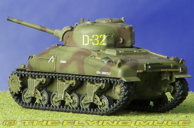 This model is configured as a vehicle fighting in the strategic breakout from Normandy in 1944. The tank has a camouflage scheme of earth brown sprayed over the standard olive drab, and has distinctive tactical markings. The yellow "D-32" refers to the second vehicle from D Company's 3rd Platoon. It also has the name "Derby" and a cartoon picture on the hull sides. This makes for a colorful paint scheme over the highly detailed and accurate form of the M4A1. All features are carefully replicated, from the tracks to the turret top. When collectors see this 1/72 scale model, they will understand exactly the slogan painted on the hull sides – "I want you"!
