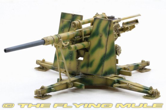 The 88 mm gun was developed as early as 1928 by Krupp of Essen, and entered production after Hitler's rise to power in 1933. The '88' proved itself to be an excellent anti-aircraft gun and a feared tank killer relying on power and range rather than concealment. It could knock out any Allied tank at distances well over 1000 meters. The series of anti-aircraft guns officially called the 8,8 was mounted on a pivoted cruciform carriage, which was carried by two single axle trailers, pulled by another vehicle and could be quickly dismounted and stationed in the field or fired while trailered. © Copyright 2003-2025 The Flying Mule, Inc.