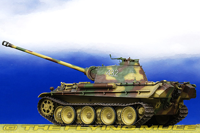 To counter the ascendancy of the Russian T-34 tank, the German Panther first appeared on the battlefield in July 1943 at the Battle of Kursk. The Panther offered a fine combination of mobility, protection and firepower, and by the war's end it was Germany's third most produced German armored fighting vehicle. The most common (and final) variant produced was the Ausf.G, which featured thicker armor and a redesigned hull.