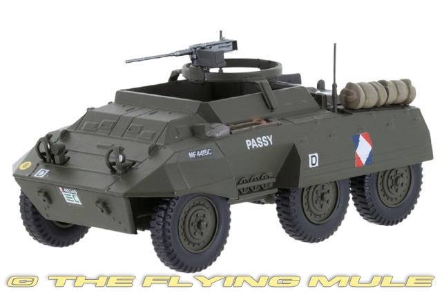 Designed to fill a need for a fast tank destroyer to replace the M6 37mm Gun Motor Carriage, the M8 Greyhound entered production in March 1943. Used by US and British troops, the M8 had a 37mm M6 gun and a Browning machine gun mounted in an open-topped turret. It was fast and reliable but had poor off-road performance, which meant it was severely limited in muddy and snowy conditions such as those in Northern Europe. When facing German armored vehicles the M8 was formidable but vulnerable-its guns could easily penetrate German armor, but its own thin armor wasn't enough to stop German 20mm autocannons. © Copyright 2003-2025 The Flying Mule, Inc.