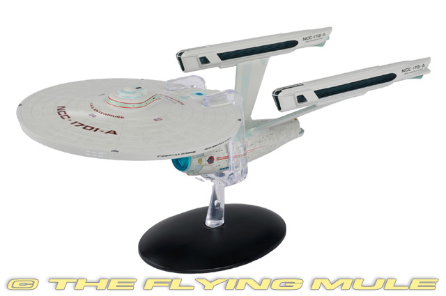 Models in the Eaglemoss "Mega" series are approximately twice the size of their standard releases. The USS Enterprise (NCC-1701-A) was a 23rd century Federation Constitution-class starship operated by Starfleet. This starship was the second Federation ship to bear the name Enterprise. Externally, the Enterprise-A was virtually identical to the refit USS Enterprise, destroyed several months prior to the launch.