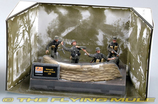 | | Code: EM-33603 Status: Sold out - Discontinued We regret this item is no longer available for sale. Please see the product description for links to similar items we still have available. | Easy Model Platinum Collection 33603 Figure Wermacht, Streets of Poland, 1939, Diorama w/4 Figures | The Easy Model "Platinum Collection" range presents highy-affordable, ready-made plastic military figures in 1:35 scale. These figures are the perfect compliment to any 1:35 Armour collection. Easy Model "Platinum Collection" figures feature: - Molded plastic construction.