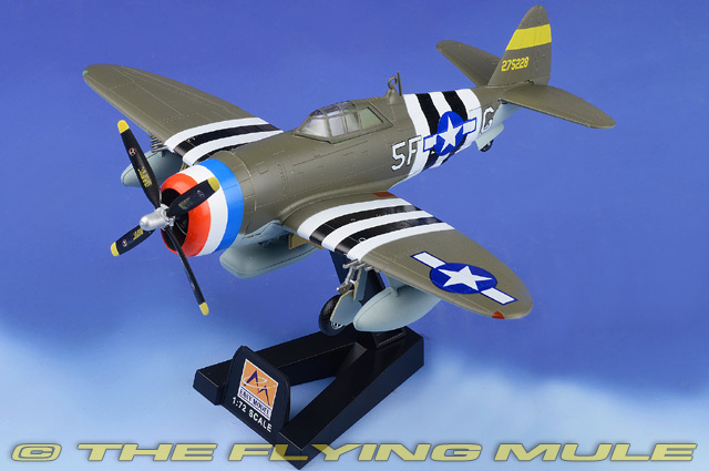 | Republic P-47D Thunderbolt | | 6" | | 6.75" | Designed by Alexander Kartveli meeting a USAAC requirement for a heavy fighter, the P-47 was first flown on May 6th, 1941. Later models featured a "bubble-top" canopy rather than the sharply peaked "razorback" fuselage which resulted in poor visibility for the aircraft's pilot. The P-47, a deadly pursuit aircraft, featured 8 x 12.7mm machine guns; all mounted in the wings. Even with the complicated turbosupercharger system, the sturdy airframe and tough radial engine, the P-47 ("Jug" or "Juggernaut" as it was nicknamed) could absorb damage and still return home. Built in greater quantities than any other US fighter, the P-47 was the heaviest single-engine WWII fighter and the first piston-powered fighter to exceed 500 mph. © Copyright 2003-2025 The Flying Mule, Inc. The Easy Model "Platinum Collection" range presents highy-affordable, ready-made plastic models of military aircraft. While these models may not have the same "heft" as their diecast siblings, they do offer remarkable value for money. Most importantly, they look perfectly at home alongside diecast modes, allowing collectors to "flesh out" their collection with types and paint-schemes not yet available in diecast. Easy Model "Platinum Collection" display model airplanes feature: - Molded plastic construction.