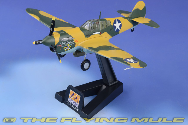 "Whispering John" Landers claimed four kills with the P-40 during the 49th FG's epic defense of Darwin in northern Australia in mid-1942. He "made ace" in this aircraft which was assigned to his senior flight leader, Capt. "Bitchin" Ben Irvin on December 26, 1942, when he downed two of six Ki-43 "Oscar" fighters. Landers had to bail out of the P-40 moments later when his fighter was shot up by the remaining Oscars." After completing his combat tour in the Pacific, Landers went on to achieve greater fame as the commander of several Eighth Air Force fighter groups. He finished he war with 14.5 confirmed aerial and 20 strafing victories. Designed to meet a USAAC requirement for a pursuit aircraft, the P-40 Warhawk was first flown on October 14th, 1938. This aircraft was tough, virtually trouble-free and saw continual improvements to arms, armor and engines. The P-40 served in numerous combat areas; often outclassed by its adversaries in speed, maneuverability and rate of climb, it earned a reputation for extreme ruggedness. Its strong construction, heavy firepower, and ability to dive enabled it to compete with enemy fighters, and it was a formidable ground-attack aircraft. P-40s were also flown by the famed Flying Tigers against the Japanese in China. © Copyright 2003-2025 The Flying Mule, Inc. The Easy Model "Platinum Collection" range presents highy-affordable, ready-made plastic models of military aircraft. While these models may not have the same "heft" as their diecast siblings, they do offer remarkable value for money. Most importantly, they look perfectly at home alongside diecast modes, allowing collectors to "flesh out" their collection with types and paint-schemes not yet available in diecast. Easy Model "Platinum Collection" display model airplanes feature: - Molded plastic construction.