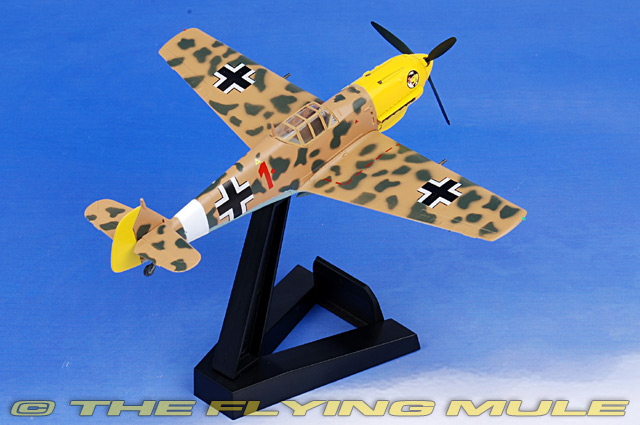 Designed to meet a Luftwaffe need for a single-seat fighter/interceptor, the Messerschmitt Bf 109 was first flown on May 28th, 1935. Its all-metal construction, closed canopy and retractable gear made the Bf 109 one of the first true modern fighters of WWII. This versatile aircraft served in many roles and was the most produced aircraft of the war and the backbone of the Luftwaffe, and was flown by Germany's top three aces, who claimed a total of 928 victories between them. Armed with two cannons and two machine guns, the Bf 109's design underwent constant revisions, which allowed it to remain competitive until the end of the war. © Copyright 2003-2025 The Flying Mule, Inc.