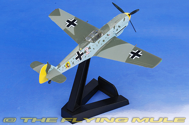 Designed to meet a Luftwaffe need for a single-seat fighter/interceptor, the Messerschmitt Bf 109 was first flown on May 28th, 1935. Its all-metal construction, closed canopy and retractable gear made the Bf 109 one of the first true modern fighters of WWII. This versatile aircraft served in many roles and was the most produced aircraft of the war and the backbone of the Luftwaffe, and was flown by Germany's top three aces, who claimed a total of 928 victories between them. Armed with two cannons and two machine guns, the Bf 109's design underwent constant revisions, which allowed it to remain competitive until the end of the war. © Copyright 2003-2025 The Flying Mule, Inc.