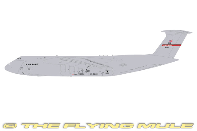 The 167th Airlift Wing of the West Virginia Air National Guard operated the massive C-5A Galaxy for more than a decade, supporting global airlift missions from its base in Martinsburg. Gaining the type in 2006, the unit used the C-5A to transport outsized cargo, military vehicles, and humanitarian supplies worldwide. The wing participated in operations across the Middle East and supported contingency, disaster-relief, and aeromedical-evacuation missions. Although the C-5A gave the 167th unprecedented reach, maintenance demands and modernization shifts led to its retirement from the fleet, with the wing transitioning to the C-17A Globemaster III beginning in 2015. Designed to meet a USAF requirement for a heavy logistics transport, the C-5 was first flown on June 30th, 1968. The t-tail configuration provides unobstructed access to the large rear loading ramp which, in combination with the massive hinged nose, allows for "drive-through" loading and unloading of cargo. The C-5 is one of the largest military aircraft ever built and its cavernous cargo compartment measures 121 feet long by 19 feet wide and 13.5 feet high. This is in addition to an upper deck with seating for 73 passengers. Current versions of the aircraft are capable of lifting up to 270,000 lbs of cargo. © Copyright 2003-2025 The Flying Mule, Inc. The GeminiJets "Gemini 200" range presents higly-detailed, ready-made diecast models of civilian and military aircraft in 1:200 scale. Prized by collectors worldwide, Gemini define the benchmark by which other 1:200 aircraft brands are judged. GeminiJets "Gemini 200" diecast airplanes feature: - Diecast metal construction, including wings and tail surfaces.