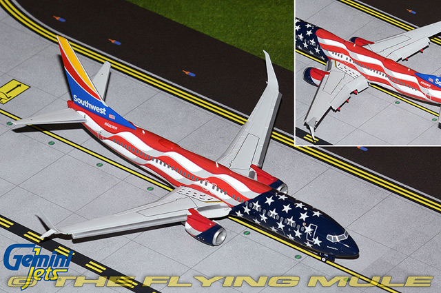 Since its inception Southwest Airlines has almost exclusively operated Boeing 737 aircraft (except for a brief period when it leased and flew some Boeing 727-200 aircraft). Southwest is the world's largest operator of the Boeing 737. Designed as a smaller, short-ranged alternative to the Boeing 707 and 727, the 737 was first flown on April 9th, 1967. Over its long operational carreer, the 737 has spawned numerous variants ranging in capacity from less than 100 to more than 200 seats. In fact, the 737 series is the best-selling jetliner in aviation history with more than 6,500 aircraft manufactured to date and more than 4,500 still in service with over 500 airlines around the world. Incredibly, there is a 737 taking off or landing somewhere in the world, on average, every five seconds. © Copyright 2003-2025 The Flying Mule, Inc. The GeminiJets "Gemini 200" range presents higly-detailed, ready-made diecast models of civilian and military aircraft in 1:200 scale. Prized by collectors worldwide, Gemini define the benchmark by which other 1:200 aircraft brands are judged. GeminiJets "Gemini 200" diecast airplanes feature: - Diecast metal construction, including wings and tail surfaces.