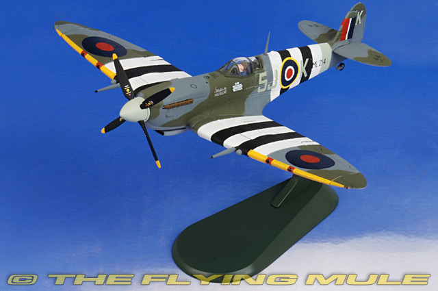 Gemini's 1:72 scale Spitfire is constructed using more diecast metal than most other models on the market today. This quality model boasts an all metal propeller and spinner hub—features uncommon in this scale—all metal landing gear and exhaust stacks, a solid metal antenna, a metal scale tail wheel and movable elevators and rudders with metal hinges. Other fine details include a nose scope that securely attaches to the landing gear for both ground and in-flight display. A delicate hand-painted mirror is mounted on the canopy, and the fuselage, wings and control surfaces are detailed with fine rivets and panel lines. Some variants have a clipped wing.