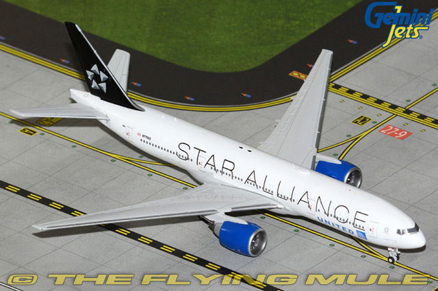 Please note: An optional display stand is available separately if you wish to display this model "in-flight". Designed as a wide-bodied, twin-engined airliner to compete with the Airbus A330/A340 and the McDonnell Douglas MD-11, the 777 was first flown on June 12th, 1994. A pair of the world's largest diameter turbofan engines power the aircraft which currently holds the record for world's largest twin-engined airliner. The 777 was Boeing's first fly-by-wire airliner, featuring complete glass cockpit displays and flight envelope protection. Standard varients have a range of 4,200 nautical miles while Extended Range (ER) variants can fly for 6,600 nautical miles and the Longer Range (LR) variant is the world's longest range airliner capable of flying 7,800 nautical miles. © Copyright 2003-2025 The Flying Mule, Inc. The GeminiJets "Gemini Jets" range presents higly-detailed, ready-made diecast models of civilian and military aircraft in 1:400 scale. Prized by collectors worldwide, Gemini define the benchmark by which other 1:400 aircraft brands are judged. GeminiJets "Gemini Jets" diecast airplanes feature: - Diecast metal construction, including wings and tail surfaces.