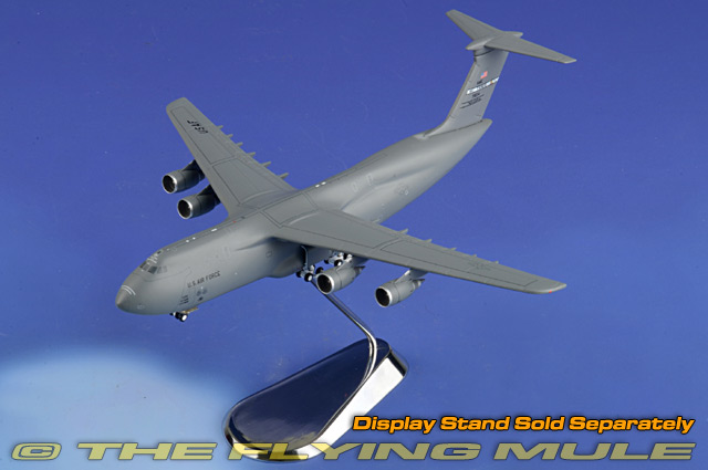 Please note: An optional display stand is available separately if you wish to display this model "in-flight". Designed to meet a USAF requirement for a heavy logistics transport, the C-5 was first flown on June 30th, 1968. The t-tail configuration provides unobstructed access to the large rear loading ramp which, in combination with the massive hinged nose, allows for "drive-through" loading and unloading of cargo. The C-5 is one of the largest military aircraft ever built and its cavernous cargo compartment measures 121 feet long by 19 feet wide and 13.5 feet high. This is in addition to an upper deck with seating for 73 passengers. Current versions of the aircraft are capable of lifting up to 270,000 lbs of cargo. © Copyright 2003-2025 The Flying Mule, Inc. The GeminiJets "Gemini MACS" (Military Air Command Series) range presents detailed, ready-made diecast models of military aircraft. GeminiJets "Gemini MACS" diecast airplanes feature: - Diecast metal construction, including wings and tail surfaces.