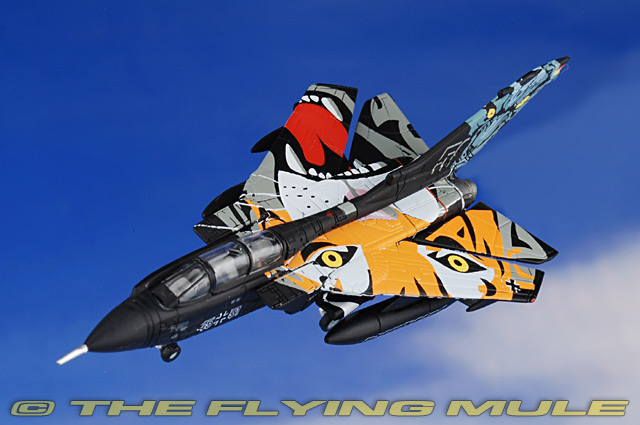 In the NATO Tiger Meet's 50th year, the 51st Reconnaissance Squadron, based in Germany's northern most state of Schleswig-Holstein developed an even for the Tiger Meet extraordinary scheme. Whereas darker colors dominate when seen from the sides, a snarling tiger comes into its own when viewed from above with fully swept wings.