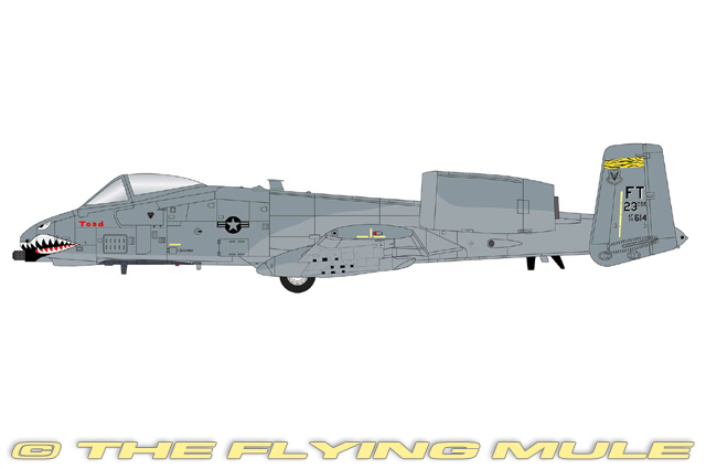 Hobby Master's 1:72 scale A-10 Thunderbolt II has crisp panel lines and a high-quality finish. The hinged canopy opens to expose beautifully recreated front and side instrument panels, control stick and seat. Other fine details include a slightly offset 30 mm gatling-gun barrel with cooling vents, a Pave Penny pod below the cockpit, several ventral mounted antenna and prominent high fuselage-mounted engine nacelles that provide an unobstructed view of the turbo fan's blades. The solid metal wing features cambered control surfaces and main gear nacelles, and a complete set of removable under-wing mounted ordnance has been included for multiple configuration options.