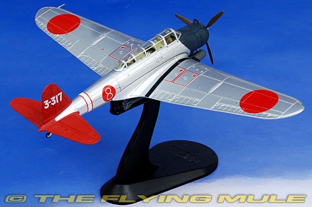 Hobby Master's 1:72 scale BN5 Kate is constructed almost entirely from diecast metal, with a large, solid metal wing that dominates the model. The multi-piece configurable canopy has two opened covers and a removable rear-facing machine gun. The front and side instrument panels are pad-printed and crisp panel lines can be seen across the surface of the model. Other fine details include simulated fabric-stretched control surfaces on the wing and elevators and cooling fins that can be seen inside the radial engine. Variants in this series include the B5N1 and the improved B5N2, configured as either a torpedo bomber, with a removable torpedo, or a dive bomber with several bomb load configurations.