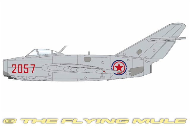 Hobby Master's 1:72 scale MiG-15 has a near-seamless construction, exceptionally crisp panel lines and just the right number of features. The canopy slides open or can be removed for an unobstructed view of the cockpit interior, highly detailed dials and gauges, control stick and side panel equipment. Three cannon pods below the nose house 23mm and 37mm cannons, each fitted with separately applied barrels. The air intake separator has transparent headlights, and most releases feature configurable speed brakes. The solid metal wing has configurable flaps that expose internal structural detail when deployed and exceptionally detailed landing gear struts and actuator arms.
