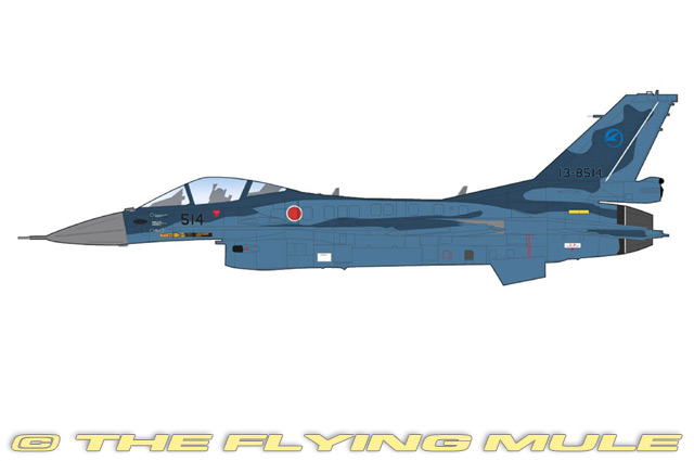 Hobby Master's 1:72 scale Mitsubishi F-2 is constructed using an intelligent mix of diecast metal and plastic, which allows for the greatest possible detail. Among this model's most remarkable features are an articulating hinged opening canopy that closes with almost no visible gap, a large number of pad-printed flight instruments, landing gear that has been constructed as subassemblies for easy configuration and a rudder and engine intake that are accurately replicated in plastic. The solid metal wing features wingtip mounted sidewinder missiles, delicate static wicks on the trailing edge and a full complement of removable ordnance and fuel tanks.