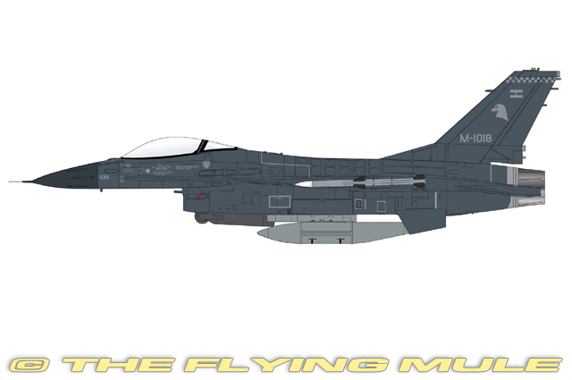 Hobby Master's 1:72 scale F-16 is constructed using an intelligent mix of diecast metal and plastic, which allows for the greatest possible detail. Among this model's most remarkable features are an articulating hinged opening canopy that closes with almost no visible gap and landing gear that has been constructed as subassemblies for easy configuration. It also includes a large number of pad-printed flight instruments and a rudder and engine intake that are accurately replicated in plastic. The models in this series cover early variants to the most advanced later variants featuring conformal fuel tanks as well as both single and two seat variants.