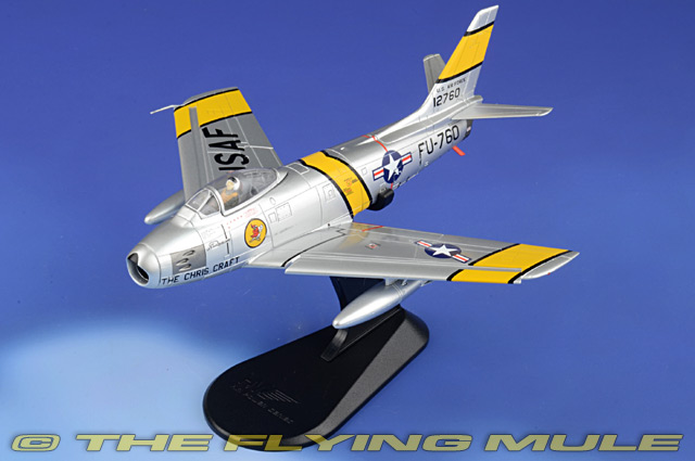 Designed to meet a USAAF requirement for a day-fighter/escort fighter/dive-bomber, the F-86 was first flown on October 1st, 1947. The Sabre's swept-wing "flying tail" configuration and a hydraulic flight-control system were some of its many firsts in technology and design that have now become standard for jet-powered aircraft. Armed with six 50 caliber machine guns, the F-86 saw extensive action in the Korean War, where it was often pitted against the MiG-15. The Sabre pilot had to be in visual contact and within gun range of the enemy in order to attempt a shoot-down, thereby making this aircraft the last true "dogfighter" in Air Force inventory.