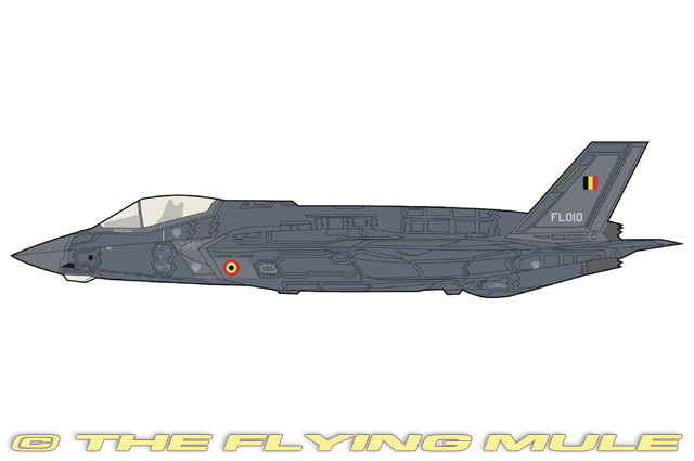 The Belgian Air Force operates F‑35A Lightning II aircraft from Florennes Air Base in Wallonia, transitioning from its legacy F‑16 fleet. The first jets arrived in October 2025 directly from the United States, marking the start of Belgium's fifth-generation fighter era. Florennes was upgraded with hardened shelters, maintenance facilities, and simulators to support the new aircraft. The F‑35As will enhance Belgium's air defense, strike capability, and NATO interoperability, forming the backbone of the country's future combat fleet. Additional deliveries over the next years will expand operational readiness, enabling full retirement of the F‑16s and integration into multinational missions. This release includes a pair of optional B61 bombs. The B61 is a U.S. thermonuclear gravity bomb with adjustable yields from about 0.3kt up to roughly 50kt, for tactical and strategic use. Designed to meet the US Military's requirement for a multi-role Joint Strike Fighter, the F-35 was first flown on December 15, 2006. This single-seat fighter is one of the most advanced aircraft of our time, said to be four times more effective at air-to-air combat and eight times more effective at air-to-ground combat than any other existing aircraft. It uses a low-maintenance stealth technology, and some versions have an innovative Lift System, which gives the F-35 vertical take-off and landing capabilities. The US plans to buy a total of 2,443 F-35s at a cost of $323 billion, which makes the F-35 the most expensive defense program in history. © Copyright 2003-2025 The Flying Mule, Inc. The Hobby Master "1:72 Air Power Series" range presents detailed, ready-made diecast models of military aircraft. Hobby Master "1:72 Air Power Series" diecast airplanes feature: - Diecast metal construction with some plastic components.