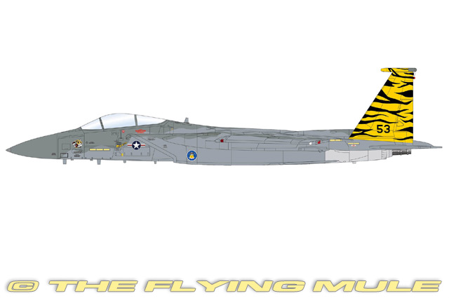 The USAF 53rd Tactical Fighter Squadron hosted the 1981 Tiger Meet at Bitburg Air Force Base, Germany. The squadron decorated one of their F-15A Eagles, #75-0053, with colorful tiger-stiped tails and a small tiger's head on the nose.