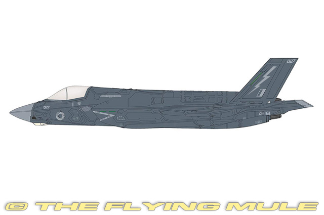Hobby Master's 1:72 scale F-35B can be configured for display in the Vertical Take-Off/Landing mode (with open lift-fan doors and rotated exhaust nozzle) or in the forward flight mode (with closed lift-fan doors) and rear-facing exhaust nozzle.