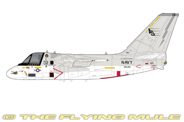 During Operation Desert Storm in 1991, US Navy VS-24 Scouts operated the S-3B Viking as part of carrier air wings deployed to the Persian Gulf. The squadron performed anti submarine warfare, surface surveillance, and aerial refueling missions in support of coalition naval forces. S-3B aircraft were also used for strike support, including targeting coordination and electronic surveillance. VS-24 provided critical overwater patrol coverage and helped secure sea lanes during the conflict. Their versatility allowed them to support both combat and logistics operations, demonstrating the S-3B Viking's value beyond its original anti submarine role. Designed to meet the US Navy's VSX requirement for an Anti-Submarine Warfare (ASW) aircraft to replace the S-2 Tracker, the S-3 was first flown on January 21st, 1972. Designed for long-endurance missions, the aircraft features a wide low-swept wing and under-wing mounted, high-bypass turbofan engines that produce a distinctively low-pitch sound, earning the plane the nickname "Hoover" (after the vacuum cleaner). After the collapse of the Soviet Union, the ASW role became less significant and the S-3 was increasingly used for surface warfare, surveilance and aerial refuelling missions before being retired from service in 2009. © Copyright 2003-2026 The Flying Mule, Inc. The Hobby Master "1:72 Air Power Series" range presents detailed, ready-made diecast models of military aircraft. Hobby Master "1:72 Air Power Series" diecast airplanes feature: - Diecast metal construction with some plastic components.