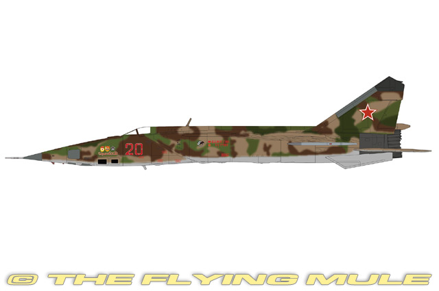 The 47th Guards Reconnaissance Aviation Regiment (47th GRAP), stationed at Shatalovo Air Base, operated the Mikoyan-Gurevich MiG-25RBF during the late Cold War. This specialized reconnaissance variant of the legendary Foxbat was equipped with advanced radar, cameras, and electronic intelligence gear, capable of Mach 2.8 high-altitude missions. From Shatalovo, near the western Soviet frontier, the regiment monitored NATO activities across Europe, conducting strategic reconnaissance flights that provided critical intelligence on air defense networks, troop movements, and infrastructure. The Guards designation highlighted the unit's distinguished heritage, while the MiG-25RBF gave it unmatched speed and altitude performance for penetrating hostile airspace. Designed as a high-speed, high-altitude interceptor to counter the threat posed by the US XB-70 Valkyrie bomber, the MiG-25 was first flown on September 9th, 1964. The airframe was designed around a pair of massive Tumansky R-15(B) turbojet engines, capable of propelling it to a top speed of around Mach 3. The Foxbat is one of the fastest production aircraft to enter service. In addition to the interceptor variants, numerous reconnaisance variants were also produced. The MiG-25 has seen service with several air forces besides Russia including those of Iraq, Egypt, Libya and Syria. © Copyright 2003-2025 The Flying Mule, Inc. The Hobby Master "1:72 Air Power Series" range presents detailed, ready-made diecast models of military aircraft. Hobby Master "1:72 Air Power Series" diecast airplanes feature: - Diecast metal construction with some plastic components.