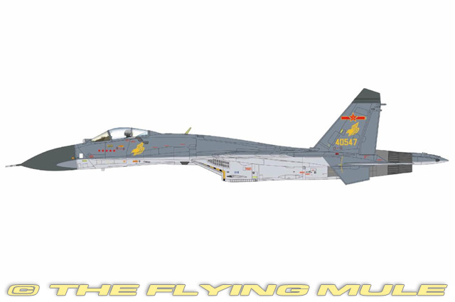 The Shenyang J-11A is a Chinese multirole fighter aircraft developed from the Russian Su-27SK under a license agreement. Manufactured by the Shenyang Aircraft Corporation, it entered service with the People's Liberation Army Air Force (PLAAF) in 1998. The J-11A retains the Su-27SK's airframe and engines but incorporates Chinese avionics and systems. It is equipped with a 30mm GSh-30-1 cannon and has 10 hardpoints for various munitions, including PL-12 and PL-9 air-to-air missiles. The J-11A has been a cornerstone of China's air superiority capabilities, serving alongside more advanced variants like the J-11B. Designed by the Soviet Union to challenge the superiority of fourth generation US fighters such as the F-15 Eagle, the Su-27 was first flown on May 20, 1977. This one seat Mach-2 fighter had the Soviet Union's first operational fly-by-wire system. The aircraft is very large compared to the MiG-29, its closest Soviet counterpart, but it is built with a high percentage of titanium, which helps minimize its weight. It is exceptionally agile and is perhaps most famous for its "Cobra" maneuver, which is a short, sustained level flight at a 120 degree angle of attack, often performed at air shows. © Copyright 2003-2025 The Flying Mule, Inc. The Hobby Master "1:72 Air Power Series" range presents detailed, ready-made diecast models of military aircraft. Hobby Master "1:72 Air Power Series" diecast airplanes feature: - Diecast metal construction with some plastic components.