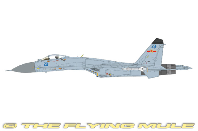 The PLANAF J-11BGH is a modernized naval variant of China's J-11B Flanker, optimized for multirole operations. It features an AESA radar for improved target detection and tracking, a glass cockpit, and digital fly-by-wire controls. Armed with advanced air-to-air missiles like the PL-10 and PL-15, it can engage multiple threats at extended ranges. The aircraft also integrates electronic countermeasure systems, including the KL700B ECM pod, enhancing survivability in contested environments. Operated by the People's Liberation Army Naval Air Force, the J-11BGH strengthens China's carrier and coastal defense capabilities, providing both air superiority and precision strike potential in maritime operations. Designed by the Soviet Union to challenge the superiority of fourth generation US fighters such as the F-15 Eagle, the Su-27 was first flown on May 20, 1977. This one seat Mach-2 fighter had the Soviet Union's first operational fly-by-wire system. The aircraft is very large compared to the MiG-29, its closest Soviet counterpart, but it is built with a high percentage of titanium, which helps minimize its weight. It is exceptionally agile and is perhaps most famous for its "Cobra" maneuver, which is a short, sustained level flight at a 120 degree angle of attack, often performed at air shows. © Copyright 2003-2025 The Flying Mule, Inc. The Hobby Master "1:72 Air Power Series" range presents detailed, ready-made diecast models of military aircraft. Hobby Master "1:72 Air Power Series" diecast airplanes feature: - Diecast metal construction with some plastic components.