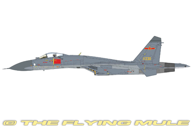 The Shenyang J-11A is a Chinese multirole fighter aircraft developed from the Russian Su-27SK under a license agreement. Manufactured by the Shenyang Aircraft Corporation, it entered service with the People's Liberation Army Air Force (PLAAF) in 1998. The J-11A retains the Su-27SK's airframe and engines but incorporates Chinese avionics and systems. It is equipped with a 30mm GSh-30-1 cannon and has 10 hardpoints for various munitions, including PL-12 and PL-9 air-to-air missiles. The J-11A has been a cornerstone of China's air superiority capabilities, serving alongside more advanced variants like the J-11B. Designed by the Soviet Union to challenge the superiority of fourth generation US fighters such as the F-15 Eagle, the Su-27 was first flown on May 20, 1977. This one seat Mach-2 fighter had the Soviet Union's first operational fly-by-wire system. The aircraft is very large compared to the MiG-29, its closest Soviet counterpart, but it is built with a high percentage of titanium, which helps minimize its weight. It is exceptionally agile and is perhaps most famous for its "Cobra" maneuver, which is a short, sustained level flight at a 120 degree angle of attack, often performed at air shows. © Copyright 2003-2025 The Flying Mule, Inc. The Hobby Master "1:72 Air Power Series" range presents detailed, ready-made diecast models of military aircraft. Hobby Master "1:72 Air Power Series" diecast airplanes feature: - Diecast metal construction with some plastic components.