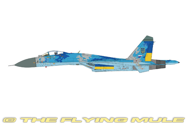The Ukrainian Air Force has adapted Su-27 fighters to employ Western supplied JDAM-ER precision guided bombs during ongoing combat operations. This integration allows the Su-27 to strike targets at extended range using GPS guided munitions with glide capability. Modifications include adapted pylons, targeting solutions, and mission planning support to enable compatibility with Western weapons. JDAM-ER provides increased stand off distance, improving survivability against air defenses. Ukrainian Su-27 crews use these weapons for precision strikes against infrastructure, logistics, and military targets. The integration demonstrates Ukraine's ability to rapidly adapt legacy Soviet aircraft to modern Western strike capabilities. Designed by the Soviet Union to challenge the superiority of fourth generation US fighters such as the F-15 Eagle, the Su-27 was first flown on May 20, 1977. This one seat Mach-2 fighter had the Soviet Union's first operational fly-by-wire system. The aircraft is very large compared to the MiG-29, its closest Soviet counterpart, but it is built with a high percentage of titanium, which helps minimize its weight. It is exceptionally agile and is perhaps most famous for its "Cobra" maneuver, which is a short, sustained level flight at a 120 degree angle of attack, often performed at air shows. © Copyright 2003-2026 The Flying Mule, Inc. The Hobby Master "1:72 Air Power Series" range presents detailed, ready-made diecast models of military aircraft. Hobby Master "1:72 Air Power Series" diecast airplanes feature: - Diecast metal construction with some plastic components.