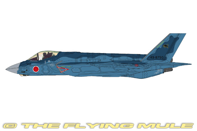 Since its creation in 1954, the Japanese Air Self-Defense Force has had a long history of purchasing state-of-the-art military aircraft from the United States, including the F-4 Phantom II and F-15 Eagle. Although the JASDF has purchased the F-35A and F-35B variants it does not currently operate the F-35C. This model asks the question: What might a Japanese F-35C look like? Wearing the blue camouflage colors typical of JASDF aircraft, this model represents a ficticious F-35C Lightning II. Designed to meet the US Military's requirement for a multi-role Joint Strike Fighter, the F-35 was first flown on December 15, 2006. This single-seat fighter is one of the most advanced aircraft of our time, said to be four times more effective at air-to-air combat and eight times more effective at air-to-ground combat than any other existing aircraft. It uses a low-maintenance stealth technology, and some versions have an innovative Lift System, which gives the F-35 vertical take-off and landing capabilities. The US plans to buy a total of 2,443 F-35s at a cost of $323 billion, which makes the F-35 the most expensive defense program in history. © Copyright 2003-2025 The Flying Mule, Inc. The Hobby Master "1:72 Air Power Series" range presents detailed, ready-made diecast models of military aircraft. Hobby Master "1:72 Air Power Series" diecast airplanes feature: - Diecast metal construction with some plastic components.