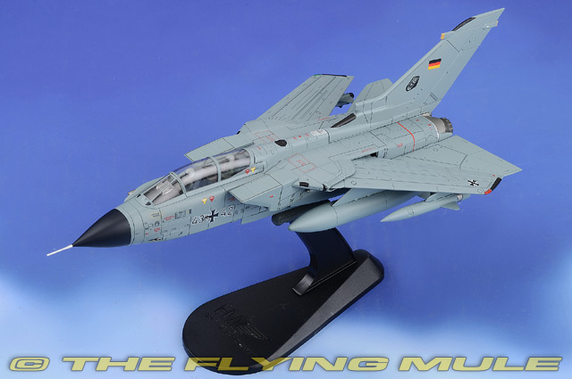 | Panavia Tornado IDS | | 9.25" | | 7.75" | Designed in collaboration with Britain, West Germany and Italy, the Tornado was first flown on August 14th, 1974 and is thought by many to be the most important military aircraft in Western European history. Nicknamed "The Flying Fin" because of its large tail fin, the Tornado has a variable wing sweep design and is capable of taking off and landing on short airstrips. It is equipped with terrain-following radar, which allows for hands-off, low-level flight in any weather. There are three primary versions: an electronic combat/reconnaissance version, an interceptor and a highly versatile strike fighter-bomber capable of carrying almost all of NATO's air-launched weapons. © Copyright 2003-2025 The Flying Mule, Inc. The Hobby Master "1:72 Air Power Series" range presents detailed, ready-made diecast models of military aircraft. Hobby Master "1:72 Air Power Series" diecast airplanes feature: - Diecast metal construction with some plastic components.