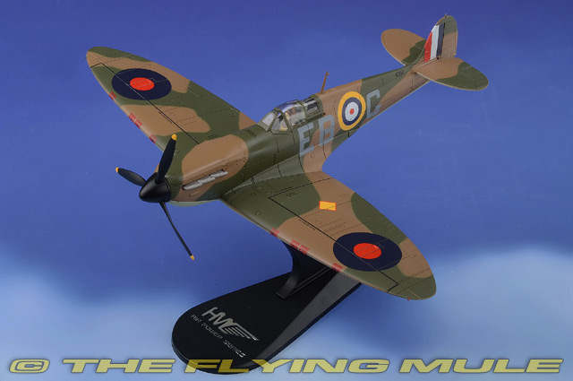 Hobby Master's 1:48 scale Spitfire Mk I is cleverly designed to provide the collector with a reasonably-priced, top quality product with just the right number of features. This beautiful model features a canopy that slides open or is removable, providing a clear view of the pad-printed gauges and correctly-rendered control stick with loop stick grip. The all-metal propeller spins freely and the engine exhaust stack has been separately applied. The near-solid metal wing has hinged metal landing gear with integrated metal gear doors, and the wing root fairing is integrated in the wing's casting, which creates a flawless transition between the fuselage and the near-razor thin trailing edge.