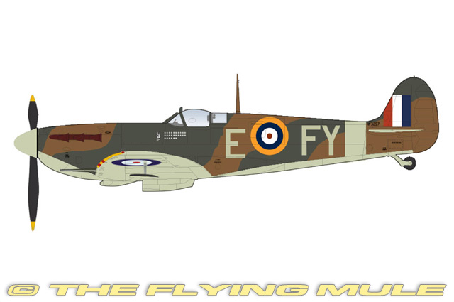 Designed by R.J.Michell to meet a British Air Ministry specification, the Supermarine Spitfire first flown on March 5th, 1936. With its combination of beautiful fighter design, the excellent performance of its Rolls-Royce Merlin powerplant and firepower provided by twin cannons and four machine guns, the Spitfire became an unrivaled symbol of victory. The Spitfire had 40 major variants and was built in greater numbers than any other British aircraft of the time. It flew operationally on every front between 1939 and 1945 and was engaged in every one of the Royal Air Force's major actions. © Copyright 2003-2026 The Flying Mule, Inc.
