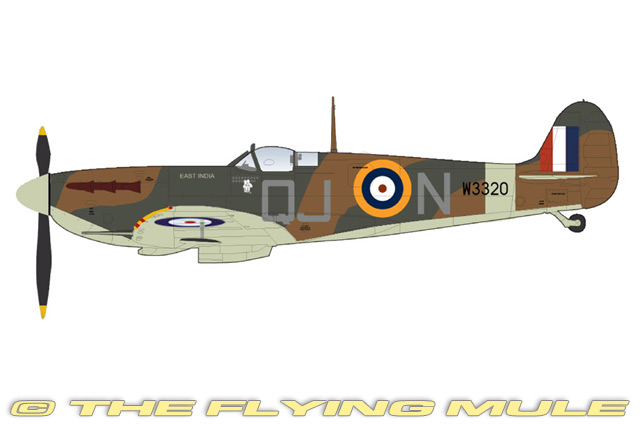 Hobby Master's 1:48 scale Spitfire Mk I is cleverly designed to provide the collector with a reasonably-priced, top quality product with just the right number of features. This beautiful model features a canopy that slides open or is removable, providing a clear view of the pad-printed gauges and correctly-rendered control stick with loop stick grip. The all-metal propeller spins freely and the engine exhaust stack has been separately applied. The near-solid metal wing has hinged metal landing gear with integrated metal gear doors, and the wing root fairing is integrated in the wing's casting, which creates a flawless transition between the fuselage and the near-razor thin trailing edge.